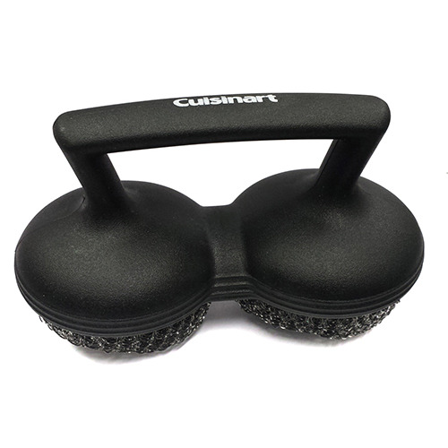 Dos cerdas de acero inoxidable enrollados soportan hasta el fregado más agresivo y están diseñados para limpiar los residuos horneados de la parte superior y los lados de la rejilla al mismo tiempo.