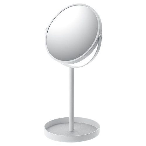 "Precisión y comodidad en un solo espejo de maquillaje, es ideal para baños o tocadores. Cuenta con un diseño giratorio de 360° y espejos de doble cara con un aumento de 1x y 3x. La bandeja inferior mantiene pequeños artículos de maquillaje o accesorios para tenerlos a mano.