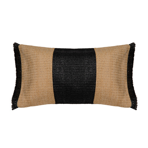 Medidas: 30 x 50 cm Material de la funda completa: Rafia sintética de alta calidad fabricada con materiales reciclados de color beige y negro y flecos negros VADELL HOME CASA HOGAR COJIN