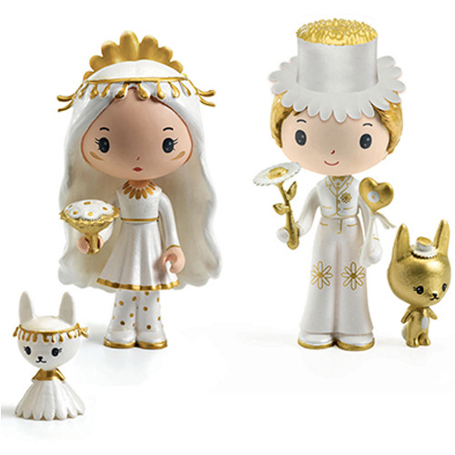 Conoce a la feliz pareja, la novia Marguerite y el novio Leopold con sus fieles compañeros Margo y Leo. Margarite lleva un vestido blanco corto al que puedes poner una falda larga incluida para hacer su traje de novia. Figuritas inspiradas en la tendencia artística de Tinyly, creados por diseñadores e ilustradores contemporáneos. Personajes articulados y pintados para coleccionar. Vive aventuras increíbles. Para comprar solo en tiendas, traemos muy pocas unidades de cada uno. Figuras de 7,5 cm