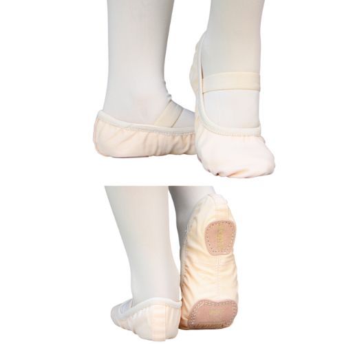 Cómoda zapatilla de ensayo marca Sansha. Lona, suela dividida para mayor flexibilidad, elásticos vienen listos y sin amarra para evitar distracciones y tropiezos de las más pequeñas.