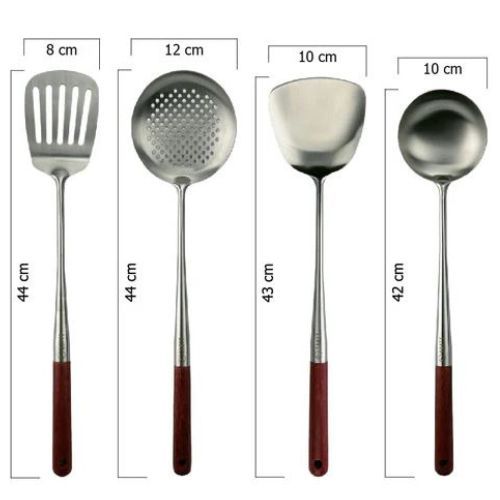 Espátula: Ideal para voltear y servir una amplia variedad de alimentos con precisión y estilo. Su hoja de acero inoxidable sólido garantiza resistencia y durabilidad, mientras que su mango de madera ofrece un agarre cómodo y natural.