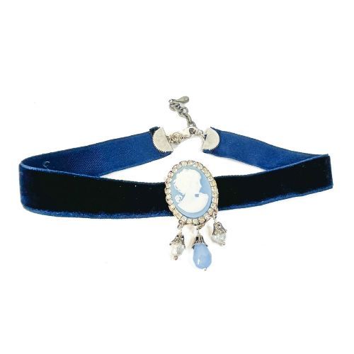 Prendedor Camafeo y Cinta TerciopeloAzul