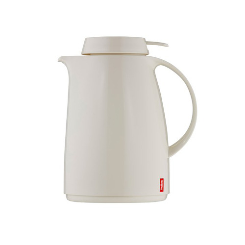Jarra térmica modelo Servitherm marca HELIOS, fabricada en plástico de alto brillo con pulsador. Adecuado para sistemas de bandejas en hoteles, restaurantes y hospitales. Exterior de plástico de alta resistencia y de alto brillo. Interior de vidrio de calidad Helios Q100, contenido aprox. 1,0 ltrs. Altura 22,5cm. Capacidad 8 tazas. Fabricación Alemana.