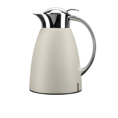 Capacidad aprox. 1,0 l. Jarra de vacío de acero inoxidable con cierre de botón para operar con una sola mano. Camisa de acero inoxidable esmerilado. Caño y asa de metal cromado. Muy buena calidez gracias al inserto de acero inoxidable de doble pared. Made in Germany.