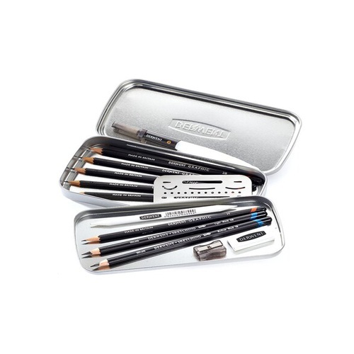 En el Set Line and Washi de Derwent encontrarás todo lo que necesitas para explorar el dibujo y la acuarela. Agrega un poco de agua a tus lápices grafito y crea increíbles manchas llenas de expresión.