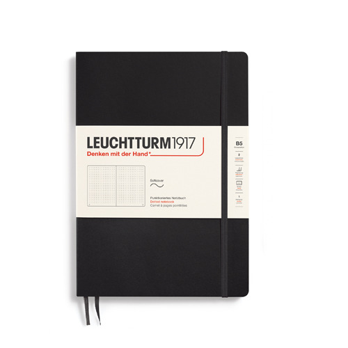 Libreta compisición (B5) Tapa blanda, páginas numeradas, punteadas, negro Nuestros cuadernos de firma se ofrecen en seis formatos diferentes, con opciones de tapa dura o blanda, cuatro tipos de rayado y una amplia gama de colores.