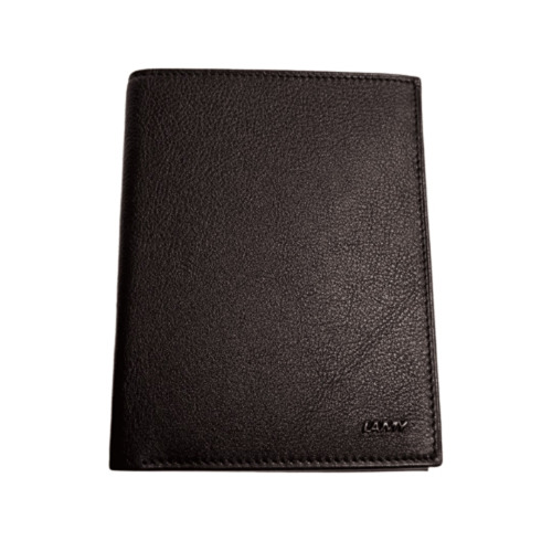 Accesorio original Lamy. Billetera de cuero genuino negro con textura suave y diseño minimalista funcional.