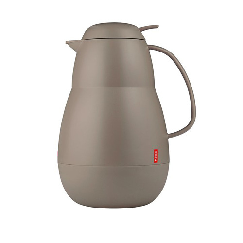 Capacidad aprox. 1,0 l. Jarra de vacío de plástico con cierre de botón para operar con una sola mano. Funda de plástico con aspecto mate (aspecto congelado). Muy buena retención del calor gracias a la Q de doble pared100 Inserto de vidrio de calidad. Made in Germany.