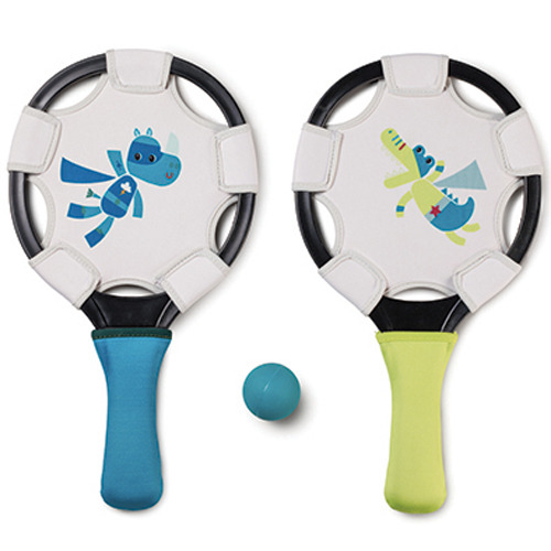 "Tu primer juego de tenis para practicar tu técnica en la playa o en el parque. Las raquetas y la pelota se adaptan perfectamente a sus manitas y son muy fáciles de llevar en la bolsa.