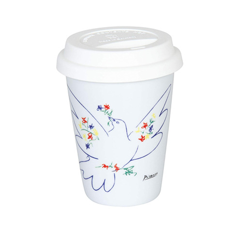 El arte lava del alma el polvo de la vida cotidiana. Fiel a esta cita del famoso artista Pablo Picaso, la taza travel de Picasso La Colombe du Festival presenta uno de sus motivos más bellos, haciendo que cada disfrute de café sea una experiencia especial. La paloma, ahora símbolo mundialmente famoso de la paz, está adornada con flores brillantes y se deleita con un resplandor especial.