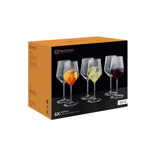 Estas copas de estilo informal y moderno son perfectos para servir entre el final de la jornada laboral y la comida. La bebida del momento, un aperitivo, vino, tumbler o cocktail, se convierte en un atractivo visual. Los reflejos creados por las suaves ranuras del cristal juegan con la luz para resaltar el color y la vitalidad de la bebida.