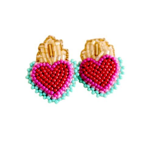 Aros Paola Pegados Kantabrya Tejidos a Mano con Mostacilla y Canutillo Ajuste Mediante Broche a Presión Largo Estimado:3.2cm Diametro Estimado:2.7cm Hecho en Colombia