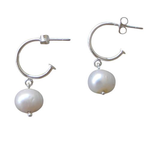 Estos aros quedan muy bien en el rostro por su argolla de plata y perlas de río. Es una versión diferente al clásico aro de perla. Están hechos en plata 925 con una argolla gruesa de 1cm de diámetro con un tope de terminación al final y con una perla de río colgando los que les entrega movimiento. Son aros de tamaño mediano y tienen por detrás un palo y tuerca de plata. Son livianos, sirven para usarlos todos los días y con cualquier tenida. Es una pieza hecha 100% a mano en Chile por Alwa. Esta joya está elaborada en plata 925, lo que implica que posee una alta calidad del metal, por lo que no debería producir ninguna alergia en la piel.