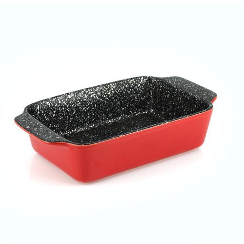 Las piezas Trento están fabricadas en cerámica para hornear y servir que garantiza la conservación de sabores y olores de los alimentos. Además garantiza una fácil limpieza y no retiene olores ni sabores una vez lavada. El antiadherente incrementa la durabilidad del producto y facilita su limpieza. Los alimentos se deslizan fácilmente y su limpieza es sencilla. Una capa inferior de imprimación fuerte y resistente para una durabilidad prolongada. Antiadherente fabricado SIN PFOA libre de metales pesados. Resistente a altas temperaturas. Un delicioso plato al horno se prepara con rapidez y gusta a todos. Consigue resultados profesionales gracias a su antiadherente ultrarresistente moteado, que permite cocinar con poca grasa. Además, la cocina al horno se caracteriza por conservar los nutrientes esenciales de todos los ingredientes utilizados. Este recipiente rectangular mide 30,5 x 18,5 x 7 cm. y resulta perfecto para elaborar comidas en casa. Gracias al material cerámico la fuente es cómoda y fácil de lavar, al tiempo que el vivo color rojo, le da un aspecto muy atractivo que deslumbrará a sus invitados.