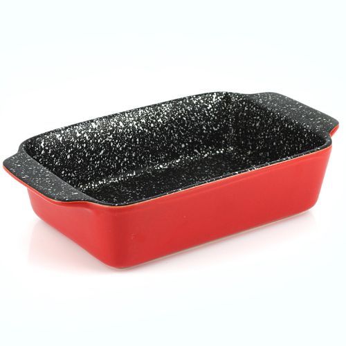 Las piezas Trento están fabricadas en cerámica para hornear y servir que garantiza la conservación de sabores y olores de los alimentos. Además garantiza una fácil limpieza y no retiene olores ni sabores una vez lavada. El antiadherente incrementa la durabilidad del producto y facilita su limpieza. Los alimentos se deslizan fácilmente y su limpieza es sencilla. Una capa inferior de imprimación fuerte y resistente para una durabilidad prolongada. Antiadherente fabricado SIN PFOA libre de metales pesados. Resistente a altas temperaturas. Un delicioso plato al horno se prepara con rapidez y gusta a todos. Consigue resultados profesionales gracias a su antiadherente ultrarresistente moteado, que permite cocinar con poca grasa. Además, la cocina al horno se caracteriza por conservar los nutrientes esenciales de todos los ingredientes utilizados. Este recipiente rectangular mide 38,5 x 21,5 x 7,5 cm. y resulta perfecto para elaborar comidas en casa. Gracias al material cerámico la fuente es cómoda y fácil de lavar, al tiempo que el vivo color rojo, le da un aspecto muy atractivo que deslumbrará a sus invitados.